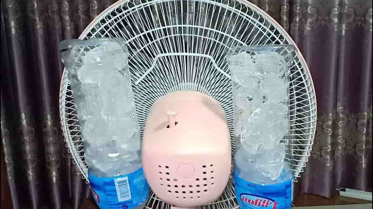 Il suffit de placer quelques glaçons dans les bouteilles situées à l’arrière du ventilateur, de le faire fonctionner à la vitesse souhaitée et de profiter enfin d’un peu de fraîcheur.