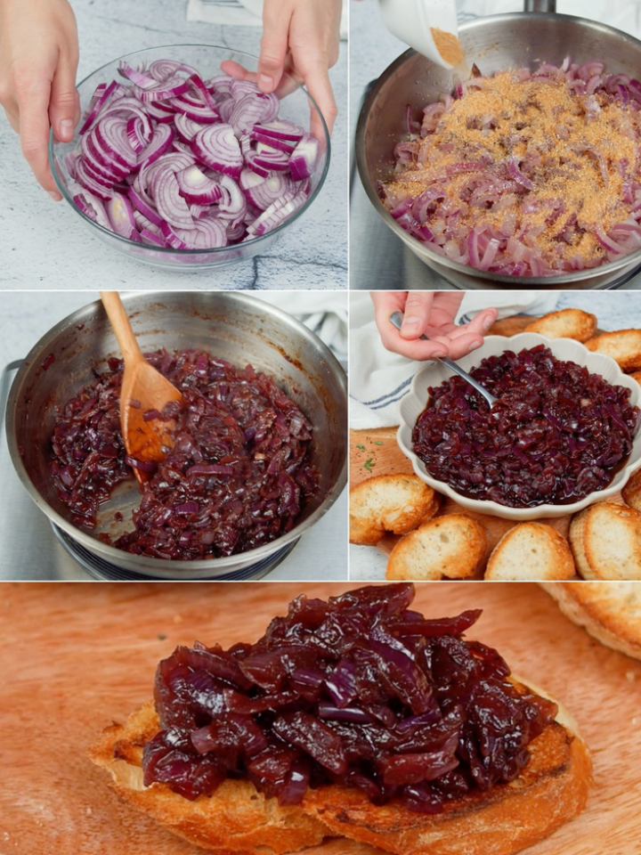 INGREDIENTS 1 kg d’oignons rouges ; 45 ml (3 cuillères à soupe) d’huile d’olive ; 60 ml (¼ tasse) de vinaigre balsamique ; 50 g (3 cuillères à soupe) de …