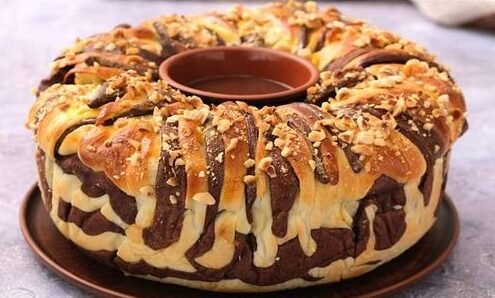 BRIOCHE AU CHOCOLAT Ingrédients: 630 g de farine (tout usage) 7g de levure 300 ml de lait 60g de sucre 2 oeufs 60g de beurre Sel 50g de cacao noisettes …