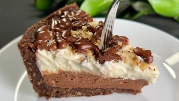 - Ensuite, presser la masse avec les doigts dans un moule de 22 cm de diamètre recouvert de papier sulfurisé et mettre au frais. Faire fondre le Nutella au bain-marie. Ensuite, retirez-la du bain-marie, ajoutez le mascarpone et incorporez ensuite délicatement la crème fouettée.