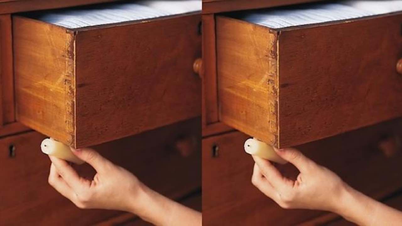 Cette méthode traditionnelle utilise les propriétés lubrifiantes de la cire pour faciliter le glissement du tiroir, ce qui permet de l’ouvrir sans l’abîmer.