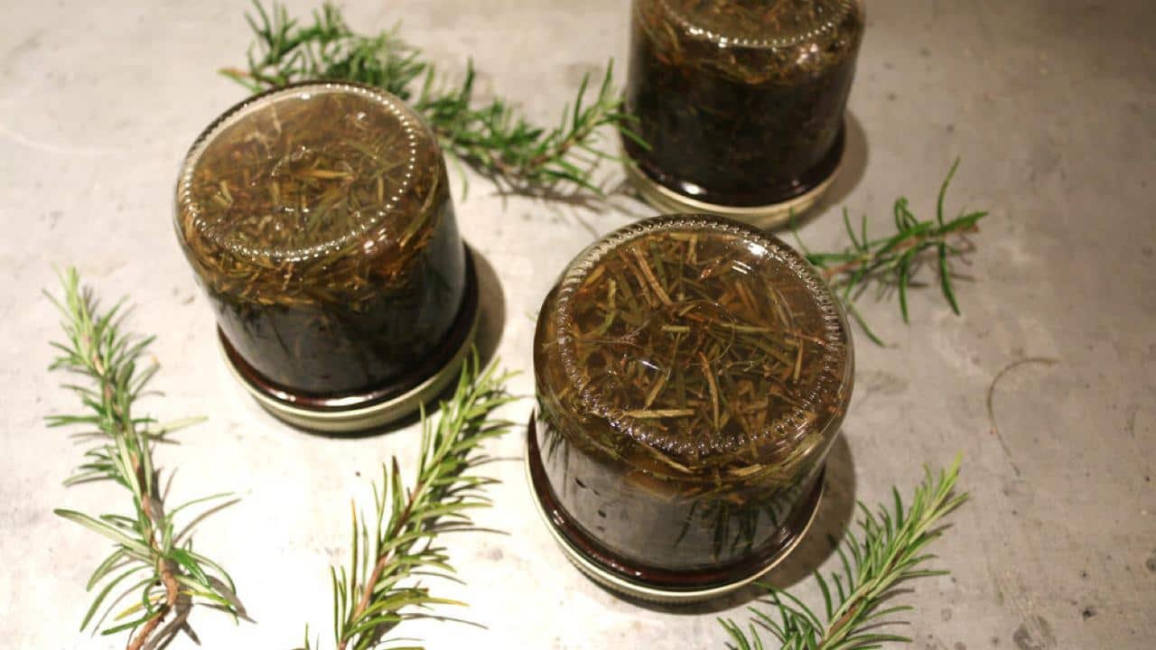 Tout d’abord, vous aurez besoin d’une branche de romarin. Le deuxième élément utile sera un bocal en verre. Le dernier ingrédient est l’alcool éthylique. Mettez le romarin dans le bocal. Couvrez-le complètement avec l’alcool à 70 degrés. Laissez infuser pendant quinze jours dans un endroit frais, sec et sombre.