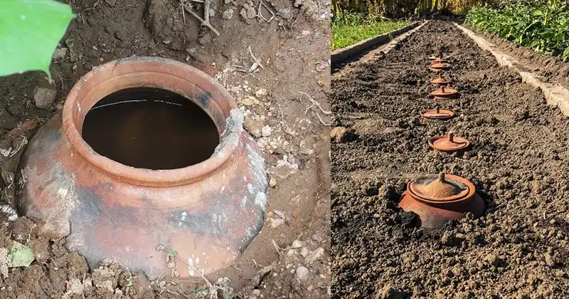 - Remplissage de l’Olla : Saturez l’olla d’eau et couvrez-la d’un couvercle ou d’une pierre plate pour dissuader l’évaporation et empêcher les débris de s’infiltrer. L’argile poreuse permet à l’eau de s’infiltrer progressivement dans le sol environnant.