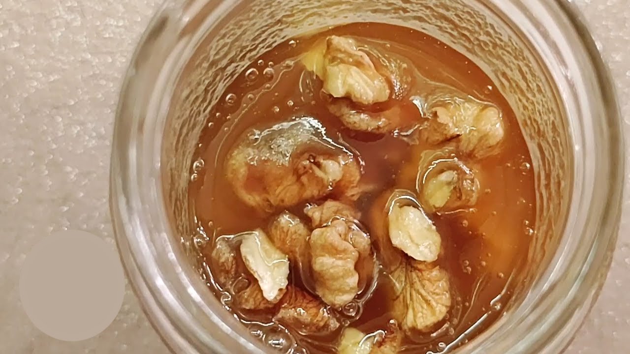 Mettez les noix dans un pot de confiture et recouvrez-les de miel. Le rapport devrait être de 1:1.